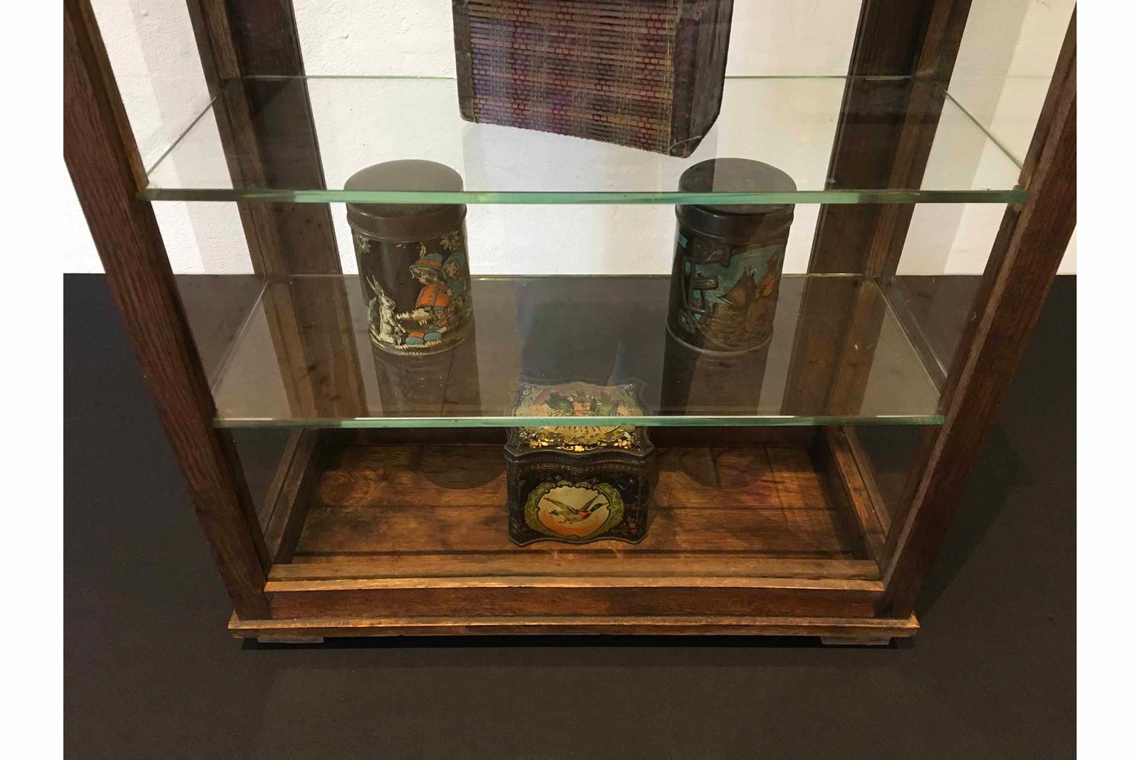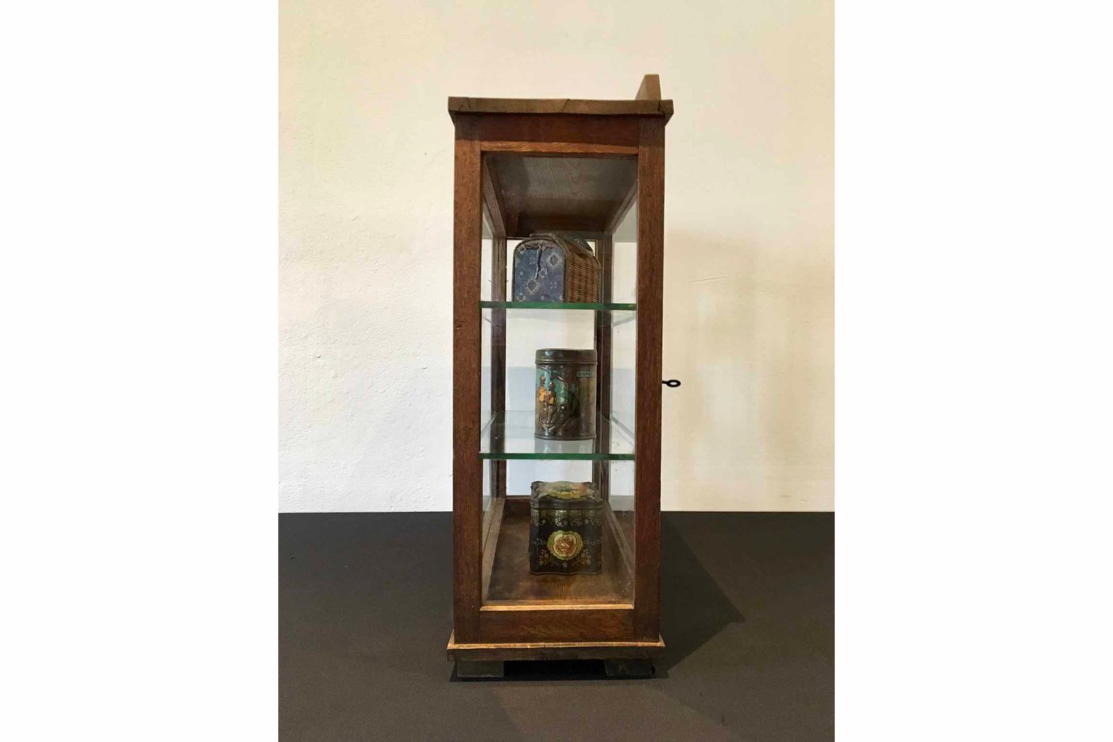 Allemaal goed zichtbaar, stofvrij en veilig in deze kleine toog vitrine of opzetvitrine. De deur heeft een slot met sleutel. Prachtig om verzamelobjecten in uw interieur, winkel, keuken, antiekmarkt of beursstand te tonen of presenteren.
