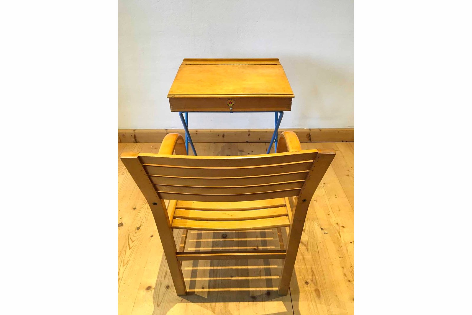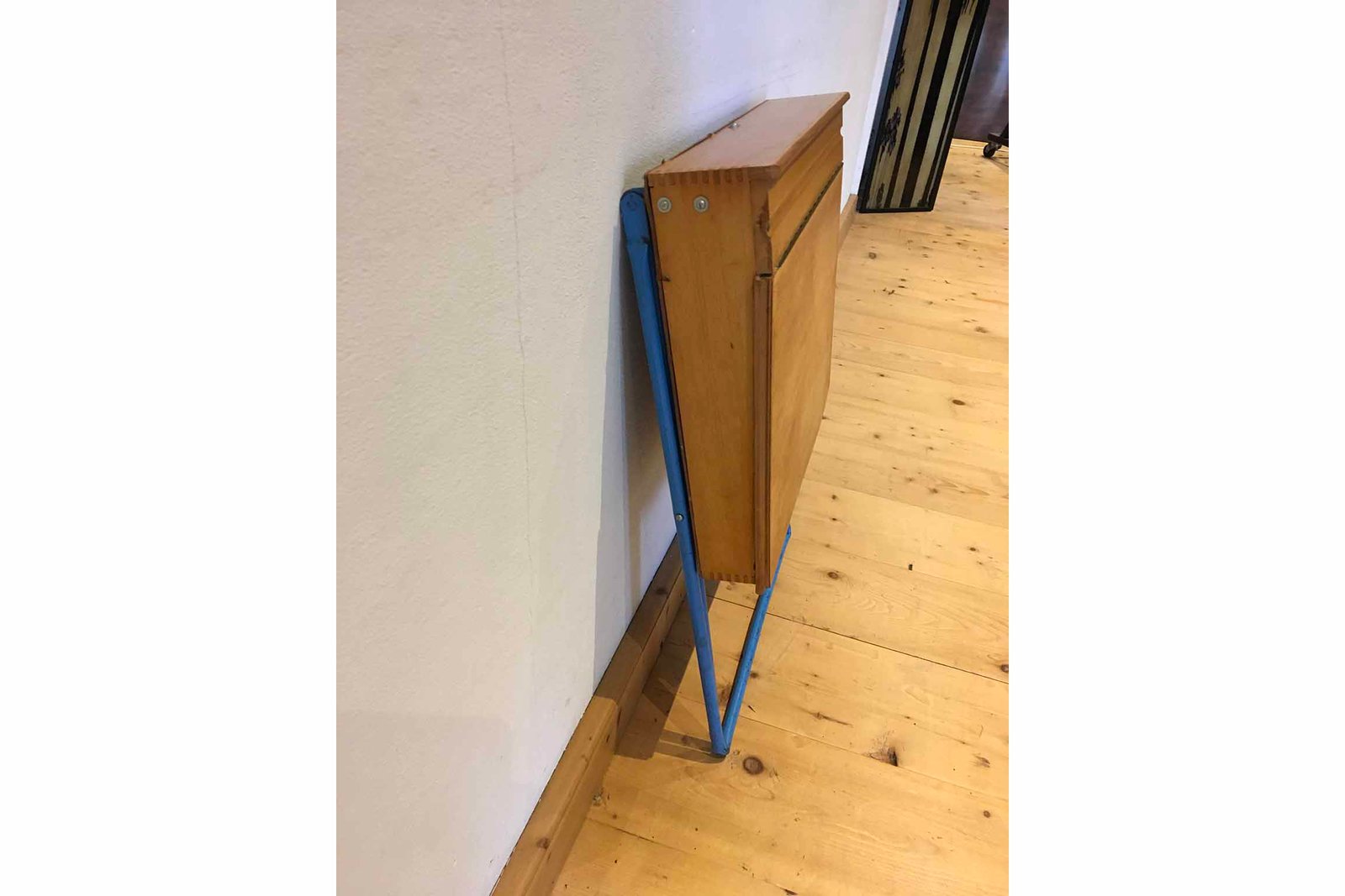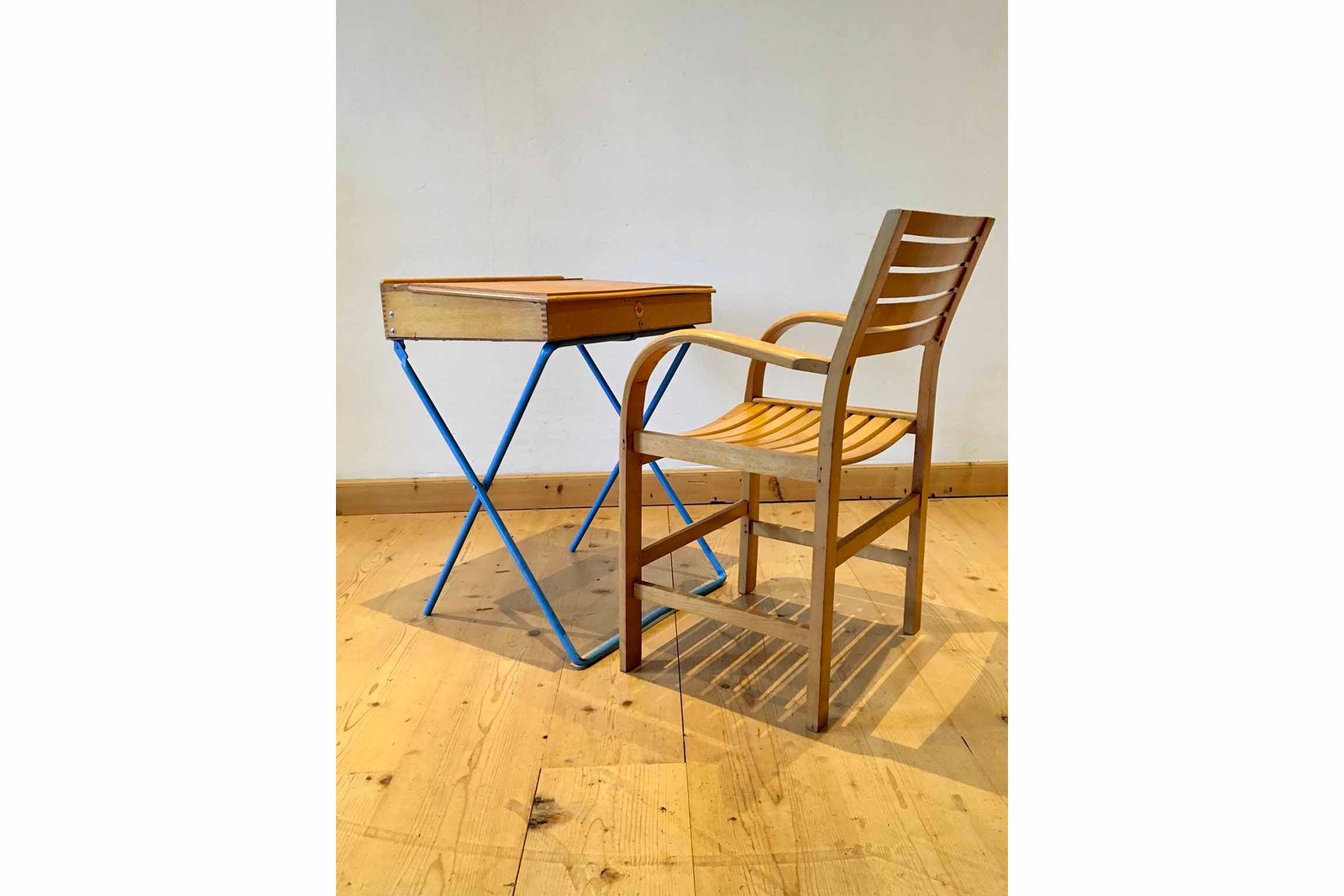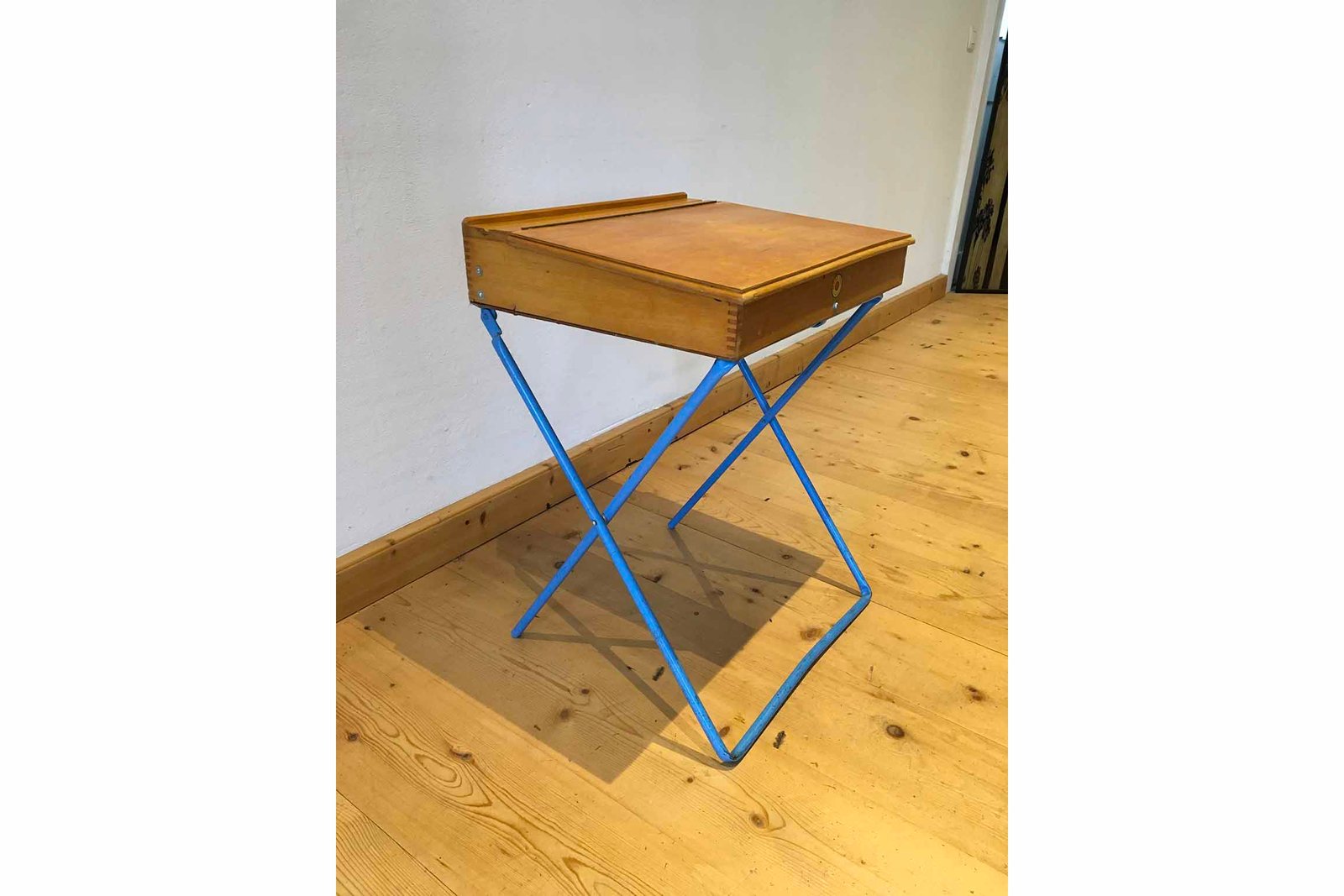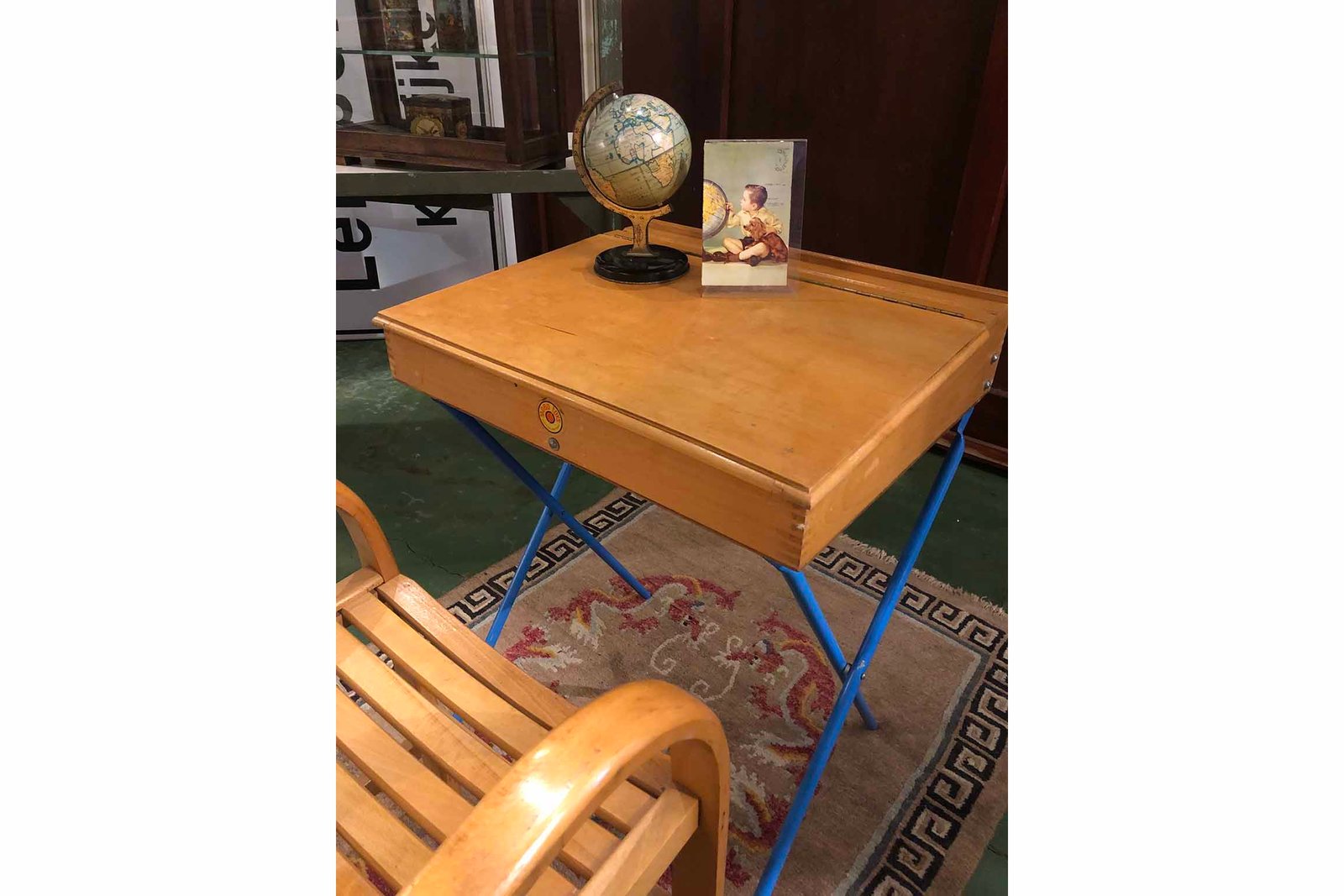 Mobo Toys bureau voor kinderen. Een houten kinderbureau op metalen frame met binnenin plaats om spullen op te bergen. Je kan de poten dichtklappen waardoor deze makkelijk aan de kant of weg te zetten is. Dus ook handig om mee te nemen in de auto, ,op reis, mee met de camper etc …Een vintage kinderbureautje – kindertafeltje uit de Jaren 50 gemaakt door Mobo Toys D Sebel & Co Ltd – Made in England.
